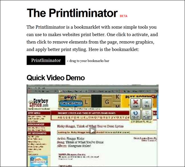 Printliminator yer imi uygulaması, bir web sayfasının istenmeyen alanlarını kaldırmanın başka bir yoludur, böylece yalnızca istediğiniz içeriği kaydedebilir veya yazdırabilirsiniz. Yer imini etkinleştirmek için tıklayın ve ardından öğeleri mevcut web sayfasından kaldırmak için tıklayın.