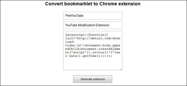 Chrome'da, yer imlerini uzantılara da dönüştürebilirsiniz. Yer imini Chrome uzantısına dönüştürün çevrimiçi araç. Her yer imi uygulamasından JavaScript'i bir uzantıya dönüştürerek yer imlerinizi adres çubuğunun sağındaki Chrome uzantıları alanına yerleştirmenize olanak tanır.