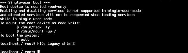 Tek kullanıcı moduna geçmek için Mac'iniz önyüklenirken Command + S tuşlarına basın. Bu moddan çıkmak için, istemde reboot yazın ve Enter tuşuna basın.