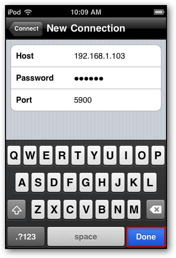 Ana bilgisayar için IP Adresini ve daha önce HippoVNC Ayarları penceresinde girdiğiniz şifreyi yazın. Bitirdiğinizde Bitti'ye dokunun.