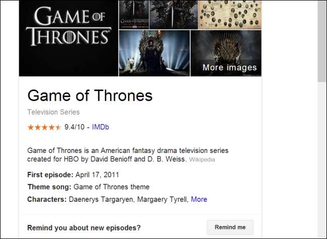 Google Asistan, belirli etkinlikler gerçekleşmeden önce de size hatırlatabilir. Örneğin, Game of Thrones'u gerçekten izlemeyi sevdiğinizi ve yaklaşan bir bölümü kaçırmak istemediğinizi varsayalım. Google'da Game of Thrones için bir arama yapın ve Bana hatırlat düğmesini tıklayın. Google, yeni bir bölüm yayınlandığında sizi bilgilendirecek ve böylece kendi başınıza takip etmeniz gerekmeyecek.