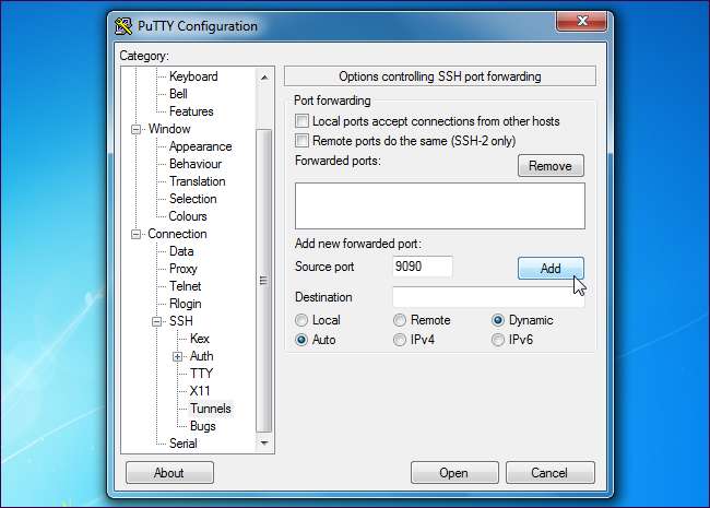"Güvenli kabuk" anlamına gelen SSH, yalnızca ağ trafiğini iletmek için tasarlanmamıştır. Genellikle, SSH, bir uzak terminal oturumunu güvenli bir şekilde almak ve kullanmak için kullanılır - ancak SSH'nin başka kullanımları var . SSH ayrıca güçlü şifreleme kullanır ve SSH istemcinizi bir SOCKS proxy'si görevi görecek şekilde ayarlayabilirsiniz. Sahip olduğunuzda, bilgisayarınızdaki uygulamaları - web tarayıcınız gibi - SOCKS proxy'sini kullanmak üzere yapılandırabilirsiniz. Trafik, yerel sisteminizde çalışan SOCKS proxy'sine girer ve SSH istemcisi bunu SSH bağlantısı üzerinden iletir - bu, SSH tüneli olarak bilinir. Bu, bir VPN üzerinden internette gezinmeye benzer şekilde çalışır - web sunucusunun bakış açısından, trafiğiniz SSH sunucusundan geliyor gibi görünür. Bilgisayarınız ile SSH sunucusu arasındaki trafik şifrelenmiştir, böylece şifreli bir bağlantıya bir VPN ile yapabildiğiniz gibi göz atabilirsiniz.