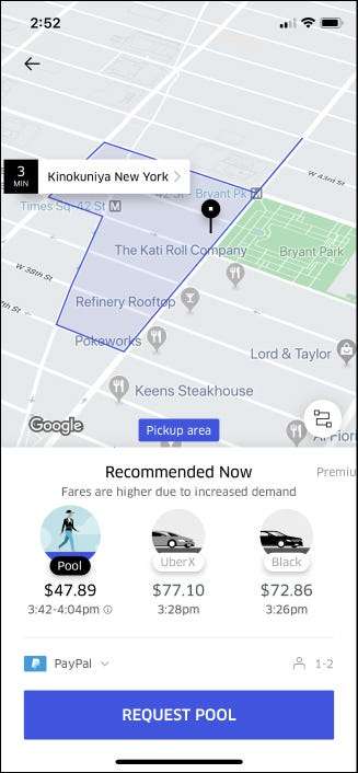 Waze Carpool, piyasadaki tek araç paylaşım hizmeti değil. Uber ayrıca adlı bir carpool özelliğine sahiptir UberPool . Waze Carpool'dan farklı olarak, UberPool normal uygulamanın bir parçası olarak çalışır. Alım ve varış noktanızı girdiğinizde ek bir seçenek olarak görünür.