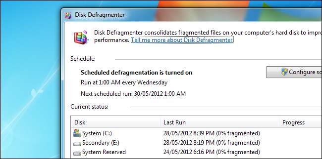 Elbette bu, hareketli parçaları olmayan ve birleştirilmemesi gereken katı hal sürücüler için farklıdır - bir SSD'nin birleştirilmesi aslında ömrünü kısaltacaktır. Ve Windows'un en son sürümlerinde, dosya sistemlerinizi birleştirmek konusunda gerçekten endişelenmenize gerek yoktur - Windows bunu sizin için otomatik olarak yapar. Birleştirme için en iyi uygulamalar hakkında daha fazla bilgi için şu makaleyi okuyun: