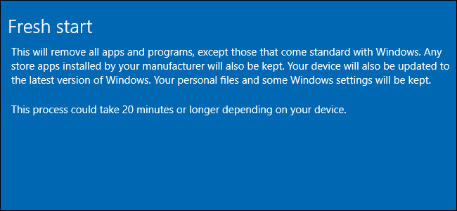 "Bilgisayarınızı Sıfırlayın" özelliği Windows 10'da, PC üreticinizin dahil ettiği tüm bloatware dahil olmak üzere bilgisayarınızı fabrika varsayılan ayar..