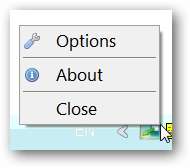 Як тільки ви закінчите встановлення AeroSnap і запустите його вперше, єдиним елементом, який буде видно, є "Піктограма системної панелі". Перш ніж йти далі, вам слід приділити хвилинку для перегляду та внесення будь-яких бажаних налаштувань у "Параметри".
