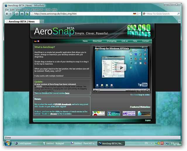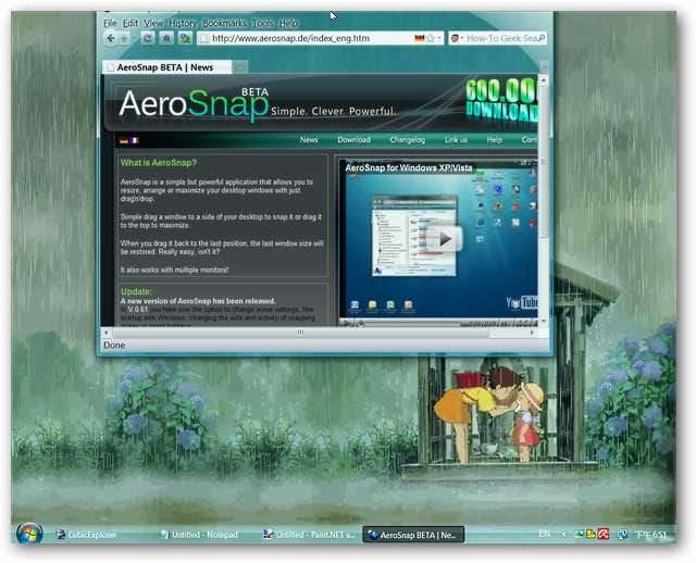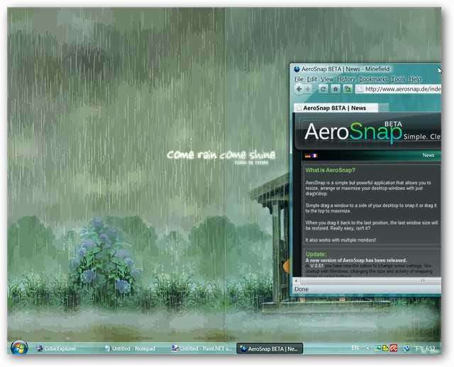 «AeroSnap - це проста, але потужна програма, яка дозволяє вам просто змінювати розмір, упорядковувати або розгортати вікна робочого столу за допомогою простого перетягування. Просто перетягніть вікно в бік робочого столу, щоб зафіксувати його, або перетягніть його вгору, щоб розгорнути. Коли ви перетягнете його назад в останню позицію, розмір останнього вікна буде відновлено. "