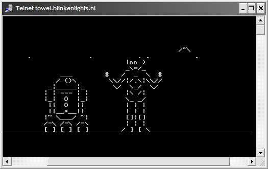 Найближчими тижнями я включу набагато корисніші поради щодо усунення несправностей мережі. В цей час я хотів би повністю переключити передачі та показати вам старий фільм про Telnet, який існує вже багато років. Натисніть Почати Запустити зараз введіть telnet: рушник.blinkenlights.nl