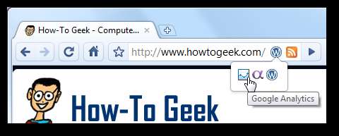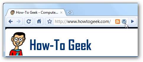 Якщо ви хочете дізнатись, яка система управління вмістом забезпечує веб-сайт, чи використовує Google Analytics або Quantcast, це розширення для вас. Chrome Sniffer ( посилання нижче ) визначає понад 40 різних фреймворків і постійно додає все більше. Він відображає логотип основного фреймворку на сайті зліва від адресного рядка. Тут ми бачимо, Chrome Sniffer помітив, що How-To Geek працює на основі WordPress.