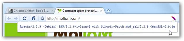 Або ось веб-сайт, який працює від Drupal, Google Analytics, захисту від спаму Mollom та jQuery. Chrome Sniffer, безумовно, розкриває багато акуратних речей, тому, якщо ви любите веб-фреймворки, вам обов’язково сподобається це розширення.