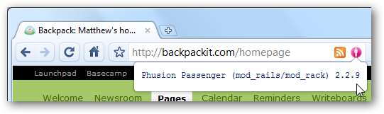 Цікаво, що веб-додаток працює на Ruby on Rails або ASP.NET? Розширення Web Technology Notifier для Chrome ( посилання нижче ) від того самого розробника, що і Web Server Notifier, дозволить вам легко виявити серверну частину сайту. Ви побачите значок технології праворуч від адресного рядка, і, як і в іншому розширенні, ви зможете отримати додаткову інформацію, натиснувши значок.