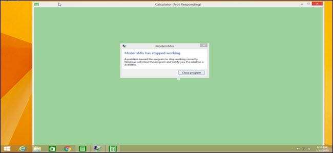 І хоча знову існують програми, які можуть обійти цю поведінку в Windows 8, як і програми «Початковий екран», вони або коштують грошей, або постачаються із додатковими послугами, або обидва. Варто згадати, що під час тестування цього запуску програми-калькулятора з усіма за замовчуванням виникла одна така програма, ModernMix.