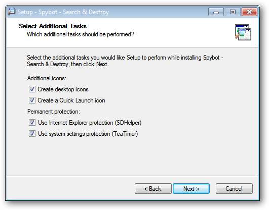 Під час встановлення Spybot Search & Destroy існує два вікна, на які слід звернути особливу увагу.