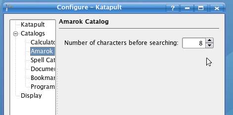 Або ви можете натиснути на Amarok у списку, а потім змінити кількість символів перед пошуком, що має суттєво покращити швидкість Катапульта.