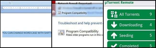 Мій улюблений ярлик - Shift + F3 в Microsoft Word. Ви можете використовувати його, щоб змінити регістр виділеного тексту з усіх великих на великі регістри, а потім лише на першу літеру першого слова кожного речення з великої літери.
