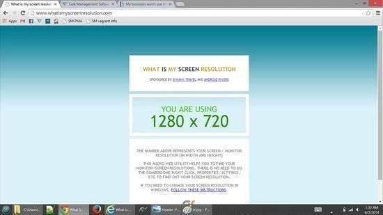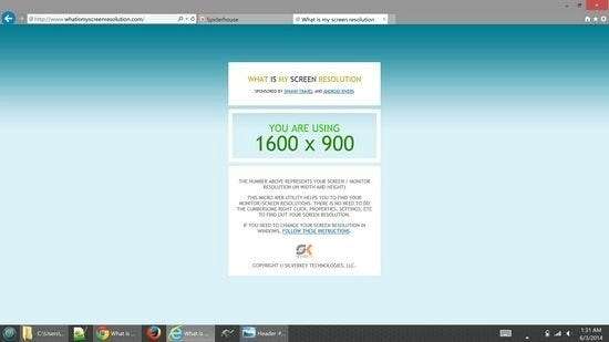 У Chrome він відображається як 1280 * 720, а в Internet Explorer він відображається як 1600 * 900. За даними whatismyscreenresolution.com, він відображає різні значення для різних браузерів. Я зробив скріншот обох і переконався, що моя роздільна здатність становить 3200 * 1800, оскільки це розмір зображення в пікселях.