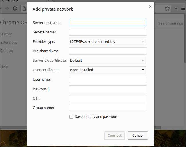 Операційна система Google Chrome має вбудовану підтримку для VPN . Зверніть увагу, що в даний час ОС Chrome підтримує лише L2TP через IPsec з PSK, L2TP через IPsec з автентифікацією на основі сертифікатів та OpenVPN VPN. Chromebook може підключатися до мереж Cisco AnyConnect, але пристрій Cisco ASA повинен бути налаштований на підтримку L2TP через IPSec.