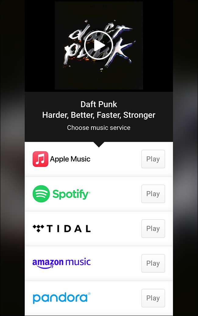 Кнопка «Play This Song» з'явиться список посилань на популярних потокових платформах, де ви можете слухати його в повному обсязі.