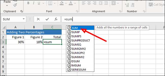 У см. Бар, введіть "= суму" (без лапок), а потім натисніть перший результат, формулу суми, яка додає всі номери в діапазоні клітин.