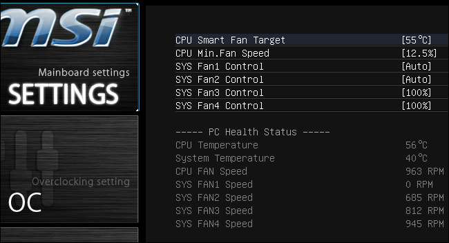 Ваші вентилятори SYS можуть мати подібні опції, або ви можете лише встановити їх на певні постійні швидкості. Перегляньте налаштування BIOS та посібник материнської плати, щоб отримати додаткову інформацію про свій конкретний ПК.