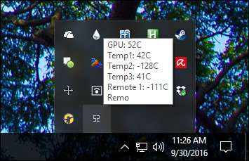 Ліворуч ви побачите стовпець, який показує, наскільки швидко ваші вболівальники працюють у обертах на хвилину (RPM). Праворуч ви побачите список температур для вашої відеокарти, чіпсета материнської плати, жорстких дисків, процесора тощо.