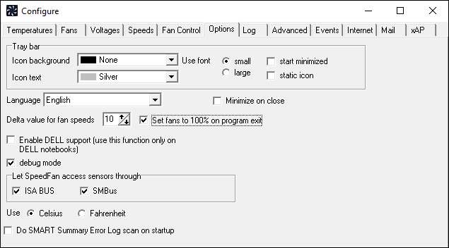 Нарешті, ви також можете помістити в системну панель піктограму, яка контролюватиме температуру системи, що корисно під час налаштування SpeedFan. Ви можете налаштувати цей значок у конфігурації SpeedFan на вкладці Параметри.