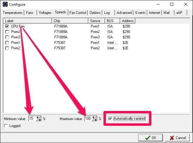 Поставте прапорець біля пункту «Автоматично змінене» і повторіть цей процес для всіх своїх вентиляторів, на яких впливає датчик. Натисніть OK, коли закінчите.
