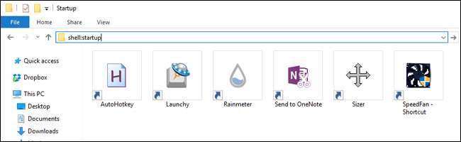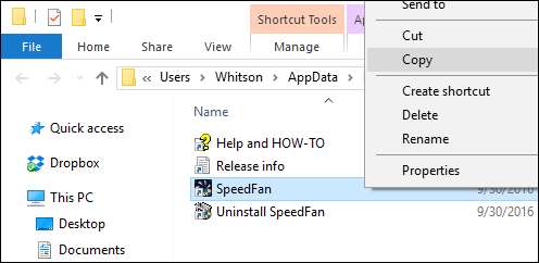в адресному рядку та натисніть Enter. Це має призвести до папки запуску. Клацніть правою кнопкою миші на порожній області, щоб вставити ярлик до SpeedFan у цій папці.