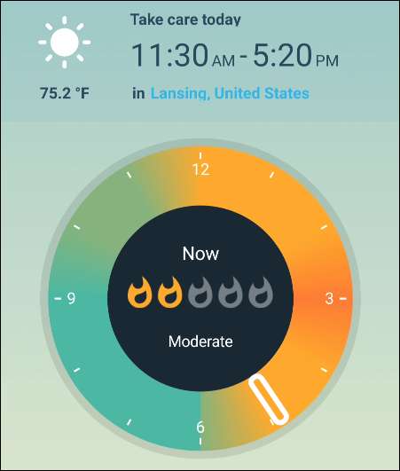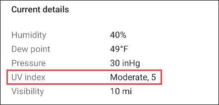Пристрої Android не мають одного стандартного додатка погоди, але в Google Search є погодний веб-додаток. Просто відкрийте Google App і шукати "Погода". Результат буде для вашого місцезнаходження, і ви можете розширити результат, щоб побачити індекс УФ.