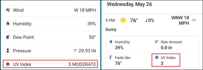 Apple та Google витягують цю інформацію з каналу погоди, який також має додаток для iPhone , iPad і Андроїд пристрої. Вона включає в себе індекс УФ у розділі "Сьогоднішній деталі" та погодинного прогнозу.