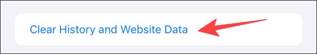 Прокрутіть вниз і виберіть "Очистити історію та дані веб-сайту". Зауважте, що це також буде Видалити всі історії веб-перегляду і печиво .