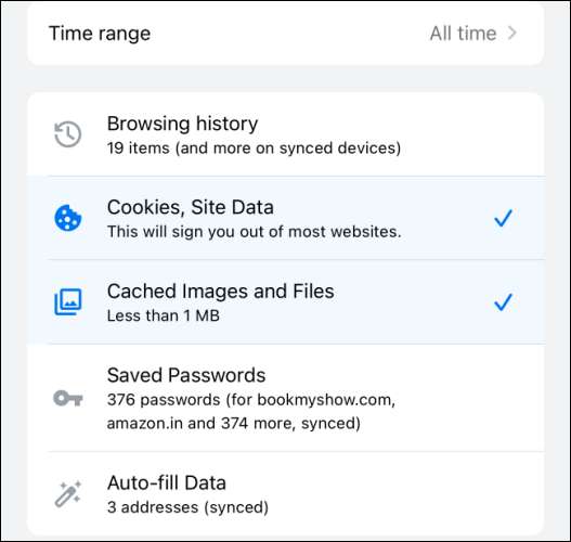 Виберіть "Часовий діапазон" та виберіть "Весь час". Потім виберіть елементи, які потрібно стерти. Майте на увазі, що видалення паролів, перегляду даних та Autofill також витирають його з Chrome на ПК або Mac, якщо ви ввімкнули синхронізацію Chrome.
