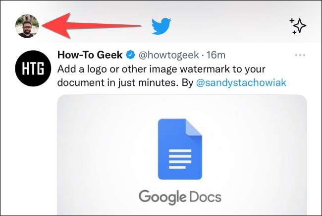 По-перше, відкрийте офіційний додаток Twitter на вашому iPhone або iPad. Натисніть на зображення профілю у верхньому лівому куті.