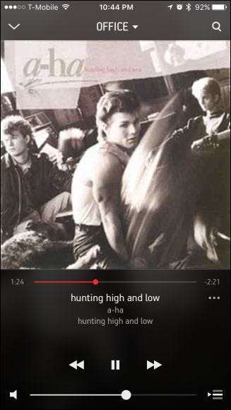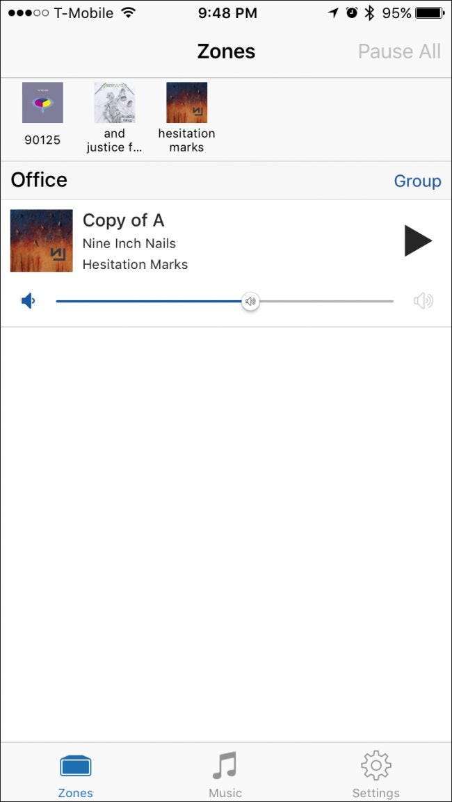 За допомогою програми ви можете бачити та транслювати музику до своїх «зон», які є лише вашими програвачами Sonos та кімнатами, до яких вони пов’язані. У нашому випадку в нашому офісі є один гравець, тож це єдина наша зона.