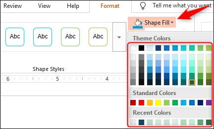Якщо ви хочете змінити кольори, щоб відповідати вашому корпоративному дизайну, виберіть пункт, який ви хочете змінити, натиснувши його, а потім натисніть кнопку «Форма заповнення» у групі «Стилі форми» «Формат». У спадному меню, який з'явиться, виберіть колір, який ви хочете використовувати.