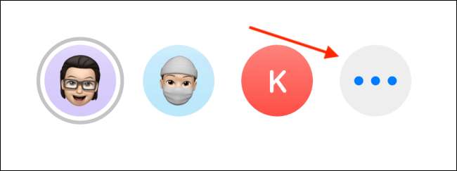 Ви побачите пару параметрів для налаштування дисплея для вашого профілю iMessage Apple. Якщо у вас вже є зображення дисплея для вашого профілю iCloud або Memoji, ви побачите ці параметри тут. Щоб створити нове зображення дисплея, торкніться кнопки меню три-точка.