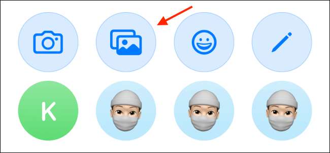 Ви побачите кожен варіант, доступний для створення зображення профілю. Цей метод схожий на процес Створення групової фотографії для розмови IMESSAGE . Ви можете вибрати фотографію з вашої бібліотеки, скористайтеся Emoji, Text, Memoji та Animoji.