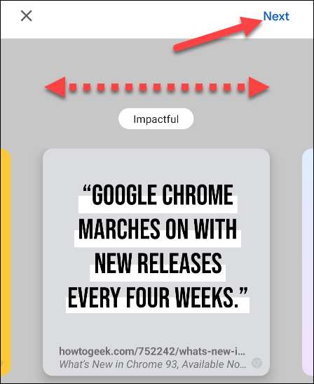 На момент написання ця функція доступна в хромованій бета-версії для Android. Як тільки ви Увімкнув прапор , ви можете поділитися текстом як зображення з різними шрифтами, кольорами та фоном. Це набагато більш візуальний спосіб, щоб поділитися цитатою про соціальні медіа.
