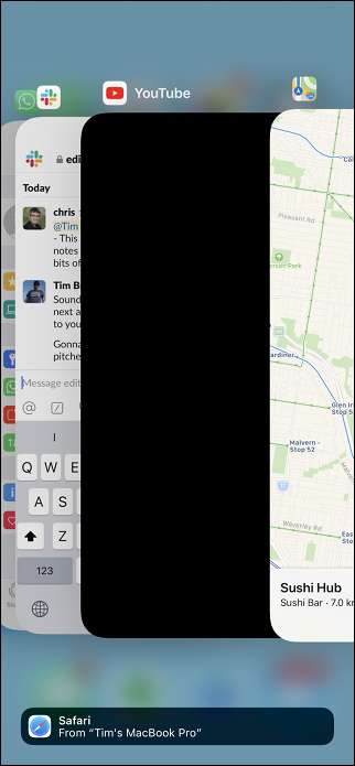 Цей список можна використовувати для швидкого переключення між програмами. Знайдіть програму, яка спричинила проблему, а потім торкніться та проведіть по ній, щоб «викинути» та закрити. Додаток зникне зі списку нещодавно використовуваних програм.