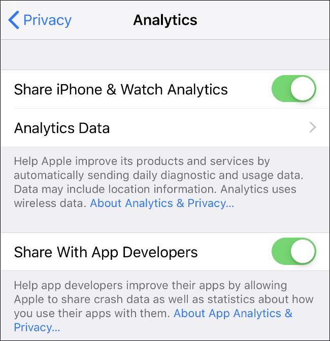 Є кілька інших перемикачів, які ви можете ввімкнути, але жоден з них не є таким цінним, як ці два, з точки зору покращення вашого повсякденного досвіду роботи з iOS. Apple обіцяє, що під час цього процесу не передається жодна ідентифікаційна інформація, але ви можете вимкнути її, якщо це викликає незручність.