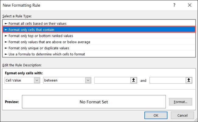 У вікні нового вікна форматування, яке з'являється, виберіть "Формат лише клітин, що містять" під вибором типу правила у верхній частині.