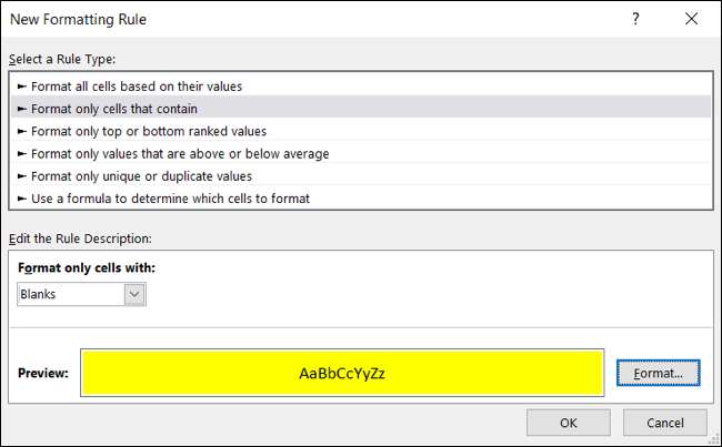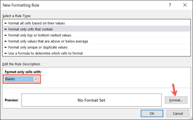 У нижній частині виберіть "Бланки" у форматі лише клітинами з випадаючою коробкою. Потім натисніть "Формат" праворуч від попереднього перегляду, щоб вибрати, як форматувати чисті клітини.