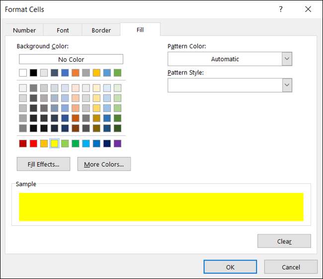 У вікні формату клітин використовуйте вкладки у верхній частині для шрифту, кордону та заповнення, щоб вибрати форматування. Натисніть "OK". Для нашого прикладу ми будемо використовувати заповнення кольору наших блакитних клітин яскраво-жовтих.