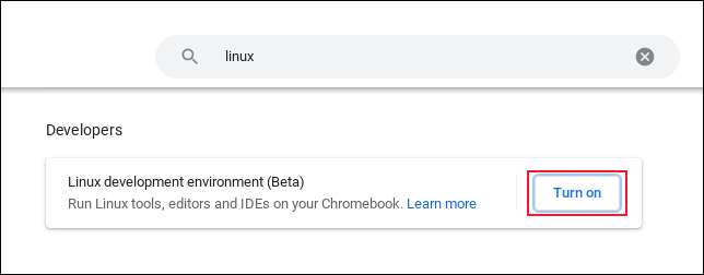 Натисніть кнопку «Turn On» кнопки поруч з «Linux середовище розробки (бета-версія)» входом.