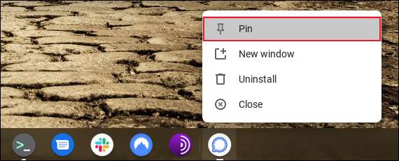 Ви, мабуть, знайдете зручно додавати сигнал до закріплених додатків на вашій полиці. За допомогою сигналу, клацніть правою кнопкою миші значок сигналу на вашій полиці та виберіть "PIN-код" з контекстного меню.