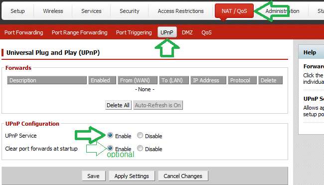 За бажанням виберіть перемикач “увімкнути” для параметра “Очистити переадресацію портів під час запуску”.