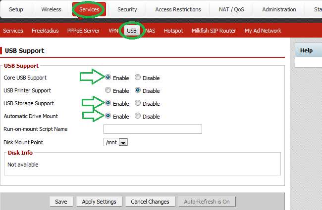 Примітка: Вищевикладене передбачає, що один HD підключений до маршрутизатора і що він має макет розділу з файловою системою на першому розділі. Незважаючи на те, що це дуже поширене налаштування за замовчуванням, відповідно до розташування розділів та форматування HD це може бути змінено .
