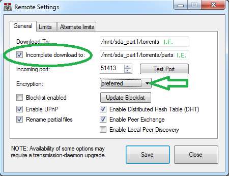 - У неповному текстовому полі поставте: “/ mnt / sda_part1 / torrents / parts”