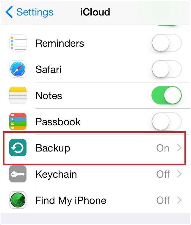 Тут зберігається вся ваша інформація iCloud, а також усі перемикачі, для яких інформація зберігається у вашому хмарному обліковому записі щоразу, коли телефон підключений до мережі. Прокрутіть вниз, і ви побачите іншу кнопку із написом „Резервне копіювання iCloud”.