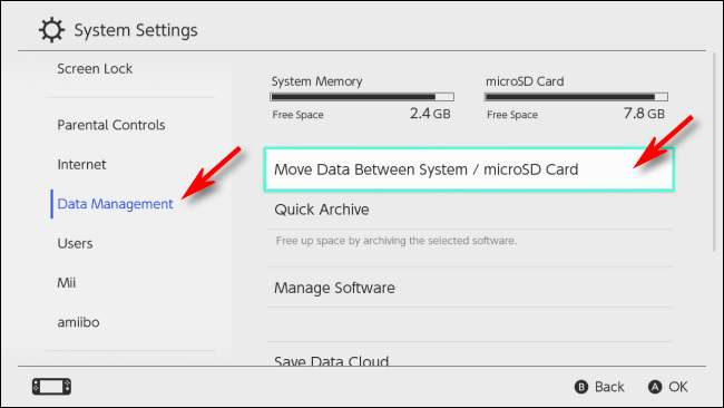 Перейдіть до Керування даними, а потім виберіть «Перемістити дані між системою / картою microSD».